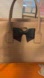 Beige with black bow. Interior is clean/handle has some minor rubbing spots, and one spot by zipper, please see all photos. Otherwise great condition!