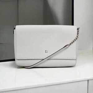 Kate Spade Charlotte Street Alek Crosshatched Leather Chain Ivory Crossbody COA