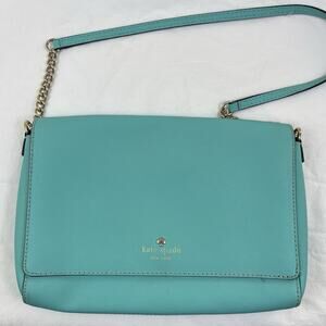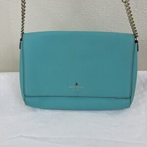 Kate Spade Charlotte Street Alek crossbody purse. Chain and leather crossbody strap. Magnetic closure. Rare Blue Hydrangea color. A few cosmetic blemishes to exterior, may come out with proper care. Clean interior.