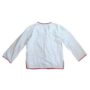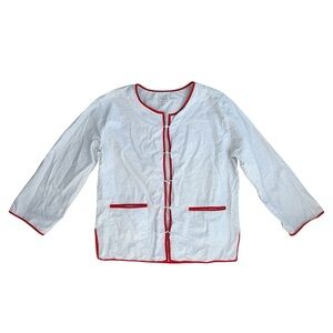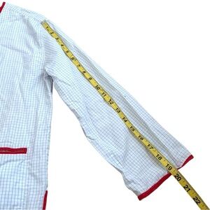 Kate Spade Checkered Blue Orange Trim Frog Clasp Shirt Blouse Size M/L Flowy