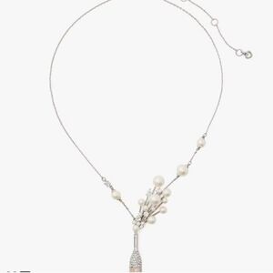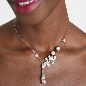 🔹Kate Spade Cheers To That Pendant Crystal Pearl Statement Necklace Silver $148