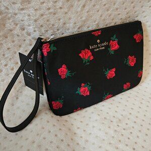 New with tags. Kate Spade medium Chelsea rose print wristlet pouch.