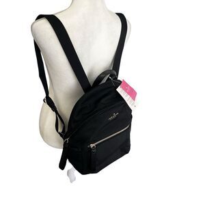 kate spade mini backpack, black nylon backpack purse, small bookbag purse, Kate Spade Chelsea Little Better, black gold travel backpack, designer mini backpack, Kate Spade everyday bag, hands free purse, casual chic backpack