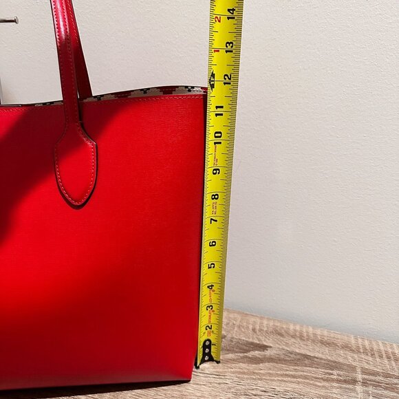 • Cherry Rouge Saffiano Leather Large Tote with Detachable Pixel Zippered Pouch