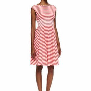 Kate Spade New York Chevron Dress Orange White Stripe Smocked Cap Sleeveless