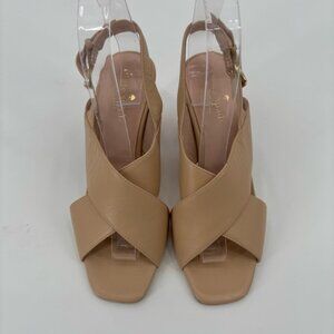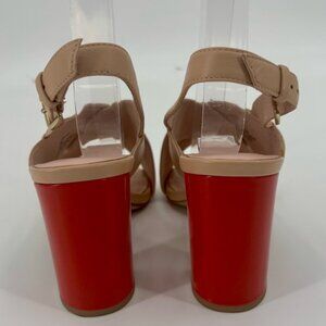 Kate Spade Christopher Holland Tan Leather Red Block Heel Sandals Size 6
