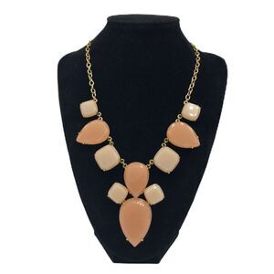 Kate Spade Chunky Statement Necklace Peach and Cream Gold Tone Link Chain