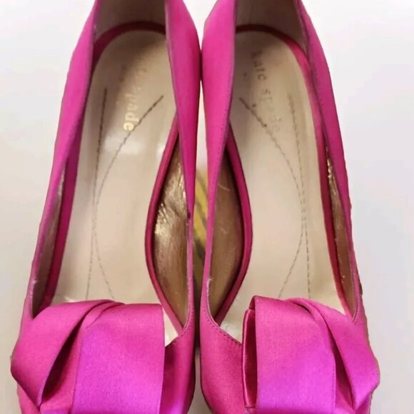Kate Spade Clarice Hot Pink Satin Ribbon Knot Pump Size 6.5 B Preowned