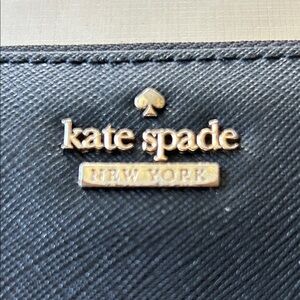 Elegant black wallet with gold-tone accents. Features zip-around closure and zipper pull leather. Guaranteed authentic KATE SPADE in excellent condition.