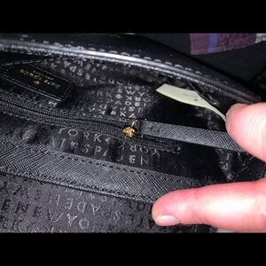 Kate Spade Classy Black Bag w/gold hardware- cross body detachable handle - gold chain shorter handle. Lined in black satin with Kate Spade print fabric- never used!