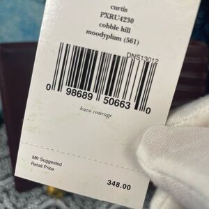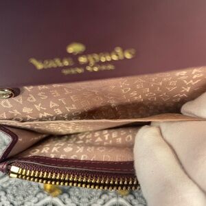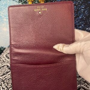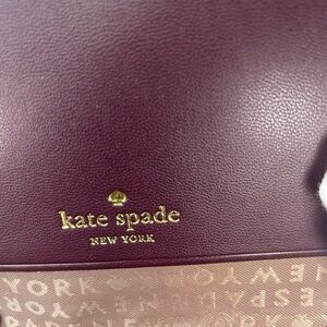 Chic Kate Spade cobble Hill wallet in Moody plum color leather. Brand new with tags no callouts other than it is missing the snap in wristlet strap. Dimensions are 5 1/4 inches wide by three and three-quarter inches high by 1 inch deep