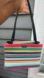 Bold tote with vibrant stripes. Features red, green, blue, and yellow hues. Ideal for a stylish look.