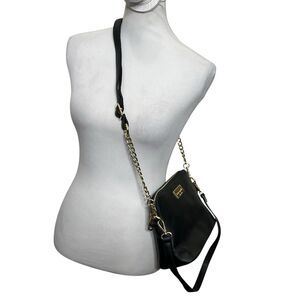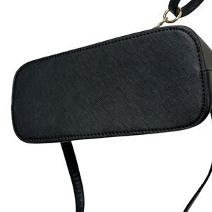 This Kate Spade convertible crossbody bag features a sleek black Saffiano leather construction with a structured silhouette and versatile strap for everyday or travel use.