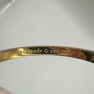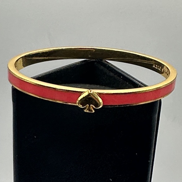 Kate Spade New York bracelet with coral enamel and gold accents. Features iconic spade detail.