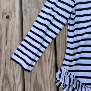 Kate Spade Cotton White Blue Striped 3/4 Sleeve Shirt Knit Ruffles Trim Size MED