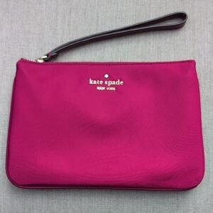 Kate Spade Wristlet with two-way spade jacquard lining, 3 credit card slots, and a center divider creating two gusset compartments.