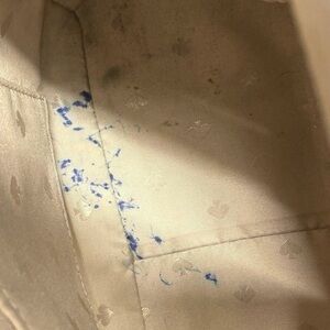 It does have some ink stains on the interior as shown and the strap could use a few stitches.