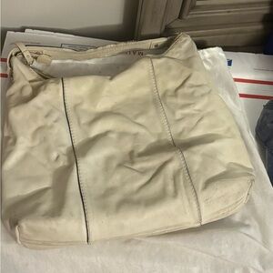Chic cream hobo bag by Kate Spade. Features dual front pockets and a spacious interior.