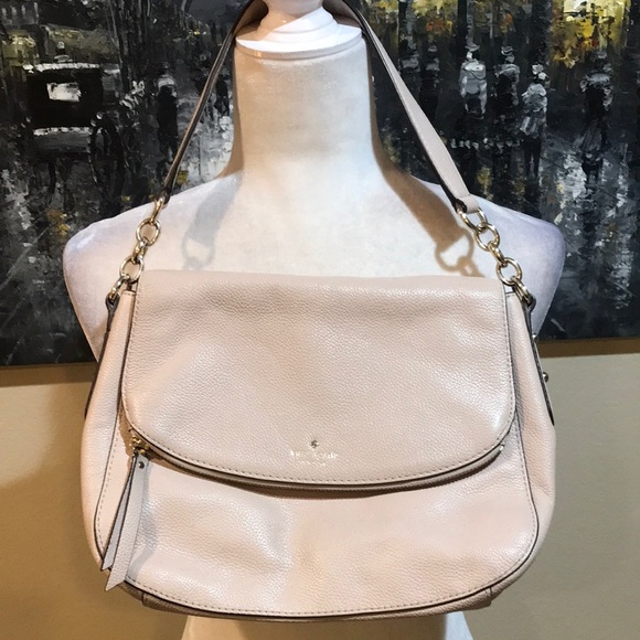 Elegant and versatile, this Kate Spade cream leather shoulder bag is perfect for any occasion. Crafted with high-quality materials, it offers both style and functionality. Some signs of wear in photos.