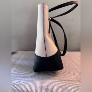 Elegant Kate Spade handbag in cream with black accents. Ideal for any occasion. Zipper closure (goods don’t fall out when you take a sharp turn while driving)