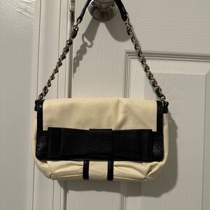 Kate Spade Cream and Black Leather Shoulder Bag with Chain Strap Bow Dust Bag