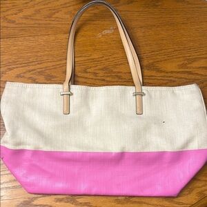 Kate Spade Cream and Pink Tote Bag with Leather Straps