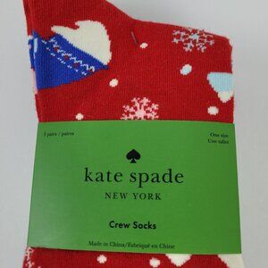 Kate Spade Crew Socks 3-pair Polar Bear Winter Polka dot Solid Black OS NWT