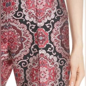 Chic cropped pants with a bold red and black pattern. Perfect for a stylish look.