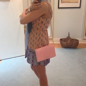 This is a authentic glossy pink and white stripe Kate Spade Crossbody bag.