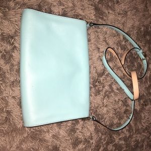 Teal, barely used, adjustable long strap with pockets and a zipper on inside.