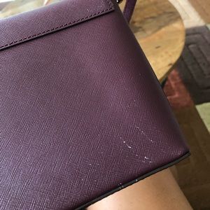 super cute burgundy envelope crossbody by Kate Spade featuring a polka dot interior! very minor signs of wear (all pictured) and a small stain on the interior but this bag still has plenty of life left in her and needs a new home today! feel free to make an offer!