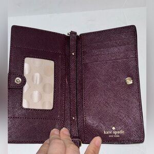 Kate Spade Crossbody Bag Wallet. Beautiful burgundy plum color. Like new condition. Strap can detach. See photos