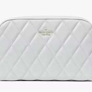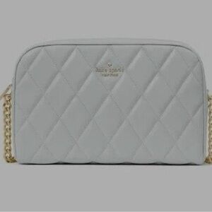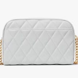 Elevate your style with the Kate Spade white quilted crossbody bag. Featuring a chic design and gold chain strap, this bag is perfect for any occasion.