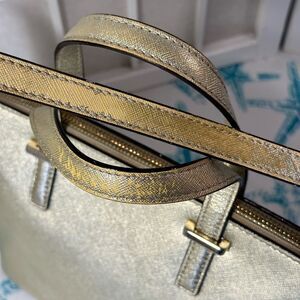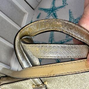 Condition is good and it’s beautiful but the gold glitter is worn off on crossbody strap in some places and handles in some places