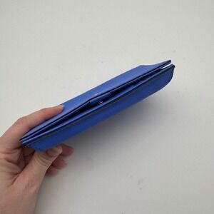 A stylish and functional Kate Spade crossbody wallet, perfect for keeping your essentials organized and accessible. This cobalt blue wallet features a sleek design with a snap closure, multiple card slots, and an ID window. The detachable chain strap allows for versatile wear as a crossbody or wallet. Ideal for travel, errands, or a night out when you want to carry light.