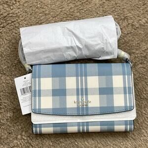 Kate Spade Perry Crossbody Wallet in Blue Gingham Plaid Multi