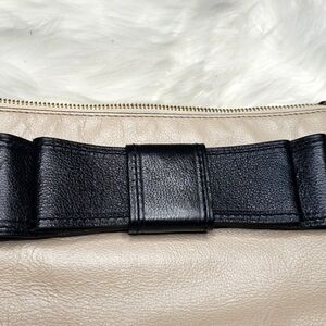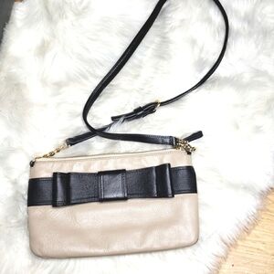 Preowned Kate Spade Crossbody with Bow Detail. Leather shows 1 light square mark on the backside, otherwise great condition. Some scratching to backside gold logo. wear spotson bottom corners