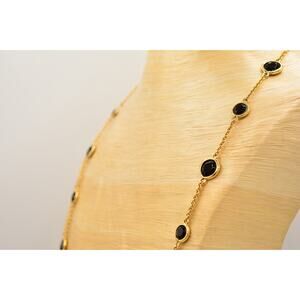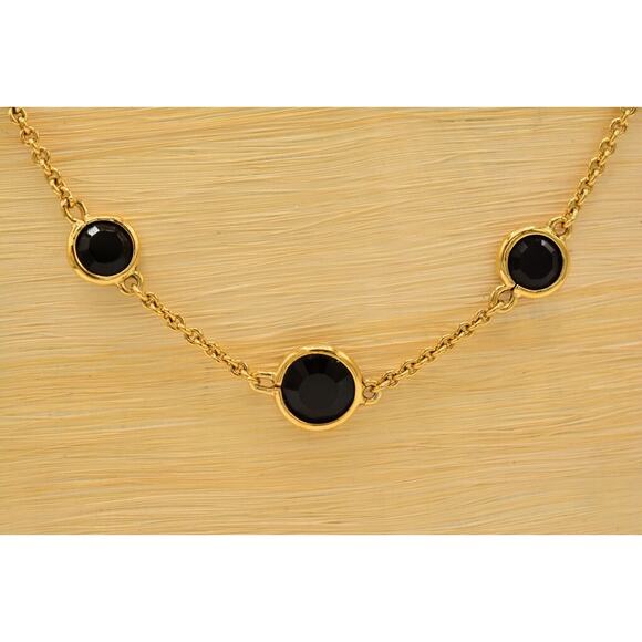 Kate Spade Crystal Confetti Necklace Chain Black Open Bezel Crystal Gold Tone 9J