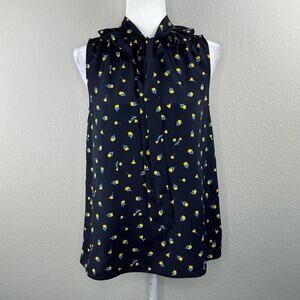 Kate Spade Dainty Bloom Floral Blue Sleeveless Tie V-Neck Blouse Top Small/Med