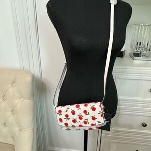 #KateSpade, #RosetteCrossbody, #NewWithTags, #FestiveFashion, #ChicAccessories, #StatementBag, #PartyReady, #Fashionista, #StylishEssentials, and #EverydayGlam.
