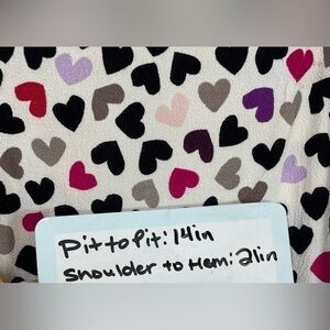 Kate Spade Dancing Hearts Jensen Top Sleeveless Peter Pan Collar Kids Girls Size Medium. Has a back keyhole. 100% Rayon. Machine washable. Made in China. Has a few marks.