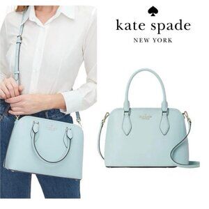Elevate your style with this beautiful Kate Spade New York Darcy satchel and matching wallet set in a stunning light blue shade. Crafted from durable saffiano leather with gold-tone hardware, this set is perfect for everyday use or special occasions.