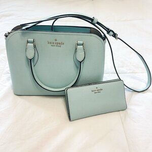 Kate Spade Darcy Satchel & Matching Wallet Set Light Cloud Blue Leather EUC