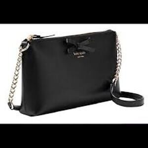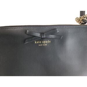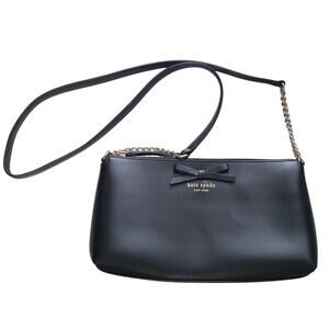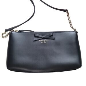 Kate Spade New York Declan Bow Leather Crossbody Bag—excellent condition, no major wear! 10”W x 5.5”H x 1.5”D. Cute leather with bow detail and logo accent, gold-tone chain strap (22.5” drop), top zip, gold hardware, inside zip and slip pockets, lined. So chic! Smoke-free home, fast shipping, bundle to save! #KateSpade #Crossbody #Designer
