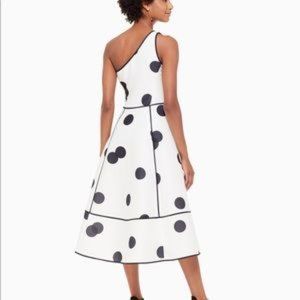 Kate Spade’s love for Navy Blue polka dots is no secret. nor is this collections affinity for bold, feminine tailoring. This dee dot emy dress is definitely all that and more. a show stopping statement-maker that looks equally as glamorous on the dance floor as it does cruising in a convertible down route 101! Perfect condition and from the Madison Avenue SS18 collection. (The polka dots are navy not black )