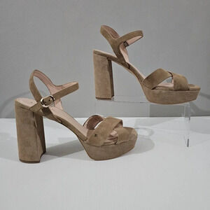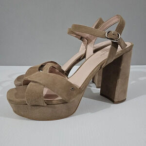 Kate Spade Delphi Platform Sandal Heel Roasted Almond Tan Suede Size 10