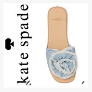 Step into style with these chic blue slide sandals from Kate Spade. Perfect for casual outings, these sandals offer both comfort and elegance. Let your style flourish with these denim sandals featuring statement making rosette’s. Textile Upper. Slide on style. Padded footbed. Rubber outsole. Size 9 M runs true. Open to offers. Quick Ship.