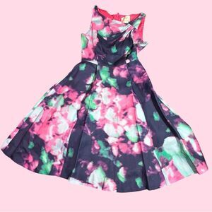 Kate Spade Designer Dress Size 2 Quiet Luxury Watercolor A Line Fit & Flare Flow