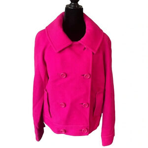 Kate Spade Double Breasted Cropped Coat 100% Wool Hot Pink XL