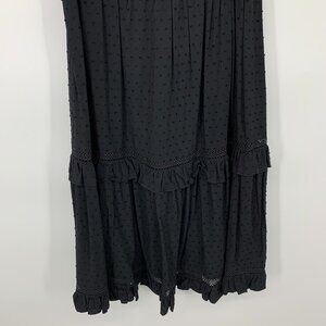 Kate Spade Dress Womens Size Medium Black Swiss Dot Sleeveless Midi Tie Neck Keyhole Floral Embroidered. New with tags. Inside lining.